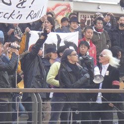 地元、道頓堀で行われた東日本大震災の支援イベントを応援に